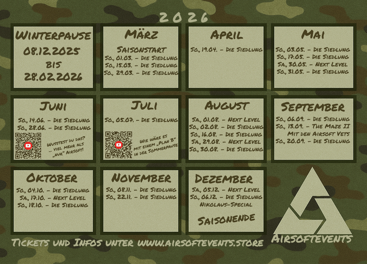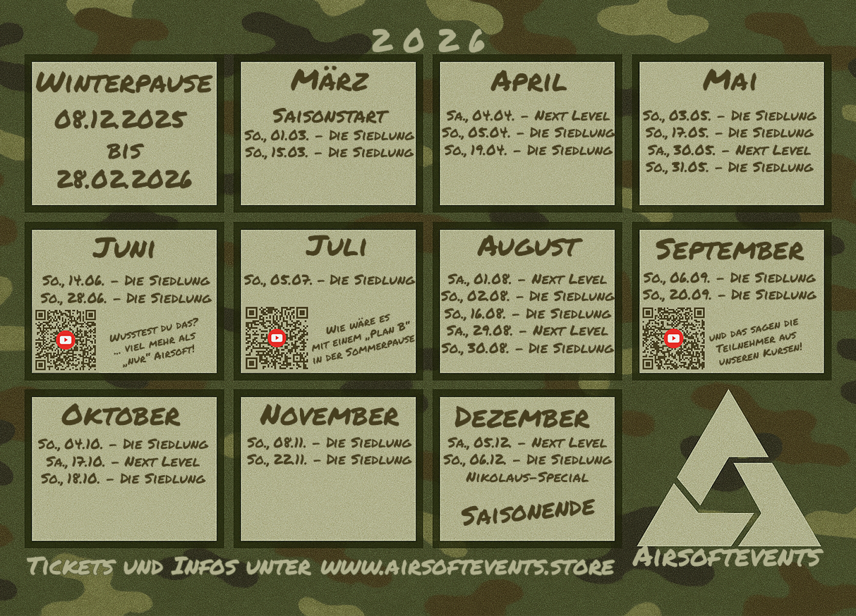 Diese Videos geben dir einen authentischen Einblick in unsere Airsoftevents. Erlebe dynamische Spielszenen, echtes Teamplay und die besondere Atmosphäre unserer Spielfelder.